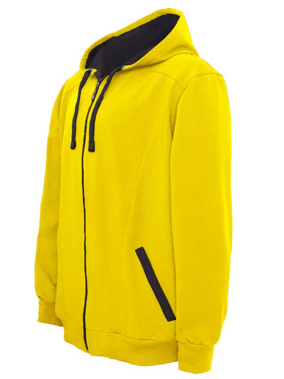 Мужская толстовка большого размера, без утепления, свободного кроя, с капюшоном, цвет желтый. Боковые карманы прорезные на молнии с листочкой. Мужская олимпийка большого размера Ultima выполнена из эластичного хлопкового трикотажа. Модель застегивается на молнию. Низ мужской толстовки от Российского производителя одежды больших размеров Ультима и манжеты рукавов на эластичной резинке, что обеспечивает комфортную посадку. Олимпийка одинакова хороша в сочетании с джинсами, а также со спортивными брюками большого размера Ultima. В зависимости от размера, длина изделия по спинке равна (от 80 до 90 см.).