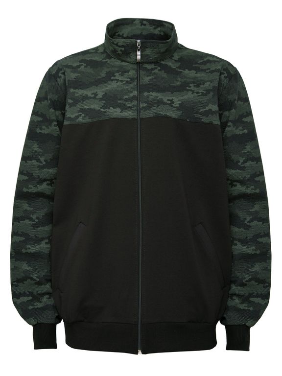 Мужская толстовка большого размера с воротником, без утепления, свободного кроя, цвет хаки камуфляж. Боковые карманы прорезные на молнии с листочкой. Мужская олимпийка Ultima большого размера выполнена из эластичного хлопкового трикотажа. Модель застегивается на молнию. Низ мужской толстовки от Российского производителя одежды больших размеров Ультима и манжеты рукавов на эластичной резинке, что обеспечивает комфортную посадку. Олимпийка одинакова хороша в сочетании с джинсами, а также со спортивными брюками большого размера Ultima. В зависимости от размера, длина изделия по спинке равна (от 80 до 90 см.).