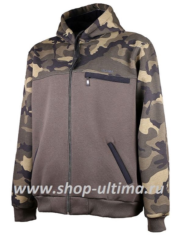 Мужская утепленная толстовка ультима большого размера, свободного кроя, с капюшоном, цвет хаки темный камуфляж. Боковые и один верхний карман прорезные на молнии с листочкой. Мужская толстовка Ultima большого размера выполнена из плотного эластичного хлопкового трикотажа с начесом (в процессе ношения данная ткань может оставлять следы ворса). Модель застегивается на молнию. Низ мужской толстовки от Российского производителя одежды больших размеров Ультима и манжеты рукавов на эластичной резинке, что обеспечивает комфортную посадку. Толстовка одинакова хороша в сочетании с джинсами, а также со спортивными брюками большого размера Ultima.