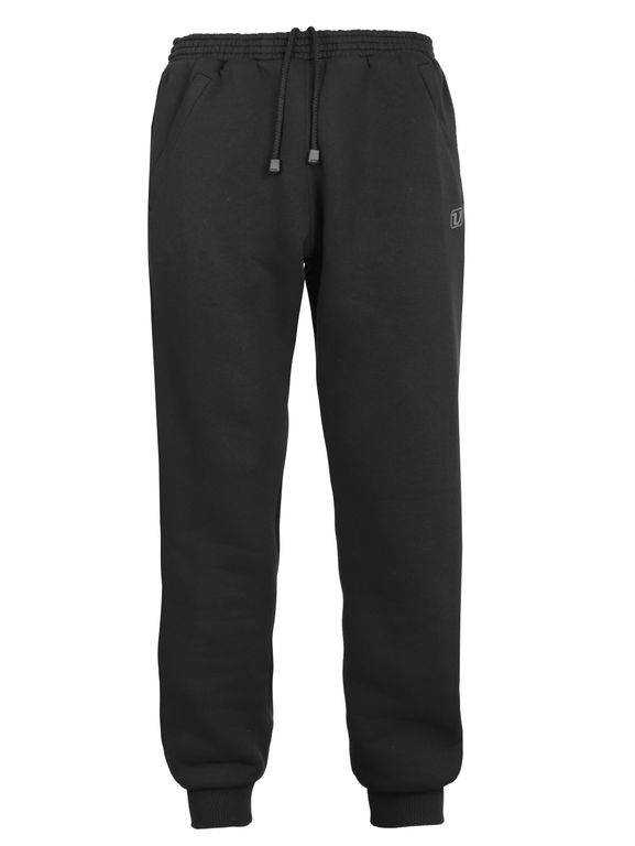 Утепленные мужские спортивные брюки, однотонные, к низу заужены, из эластичного трикотажа с начесом. Передние карманы с листочкой на молнии. Модель с высокой посадкой, широкий пояс-резинка с внутренним шнурком, низ брючин на манжете. Комфортные брюки прекрасно подойдут для зимних прогулок, отдыха и занятия спортом на свежем воздухе.